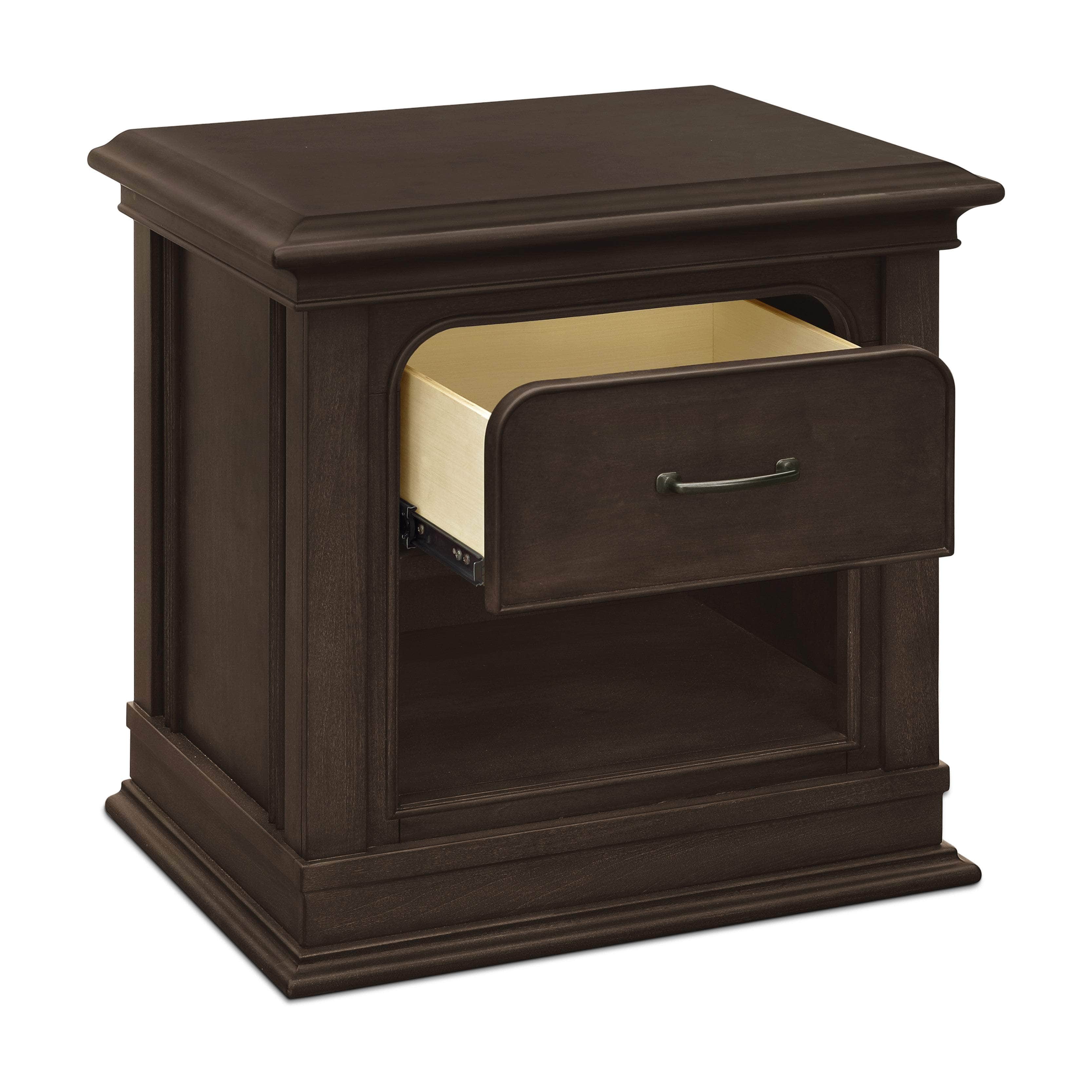 The Rhodes Nightstand adds a final touch to your nursery, highlighting the details of each Rhodes Collection piece. From the half round trim to the column-like corners, it captures the strong silhouette found throughout the collection, while offering additional top drawer storage for your baby's accessories and space at the bottom for books and décor.